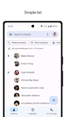 • إضافة جهات اتصال وتعديل المعلومات بسهولة، مثل أرقام الهواتف وعناوين البريد الإلكتروني والصور