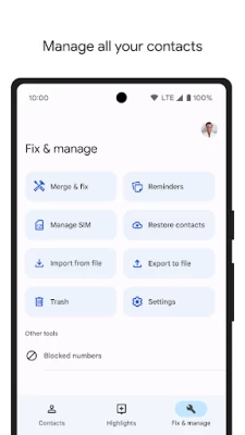 • الحصول على المساعدة في دمج جهات الاتصال المكرّرة وإضافة تفاصيل مفيدة وغير ذلك