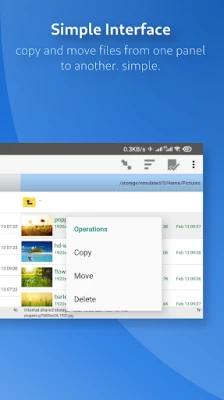 Ghost Commander is a dual-panel file manager (as well as a FTP, SFTP, SMB (Windows share), WebDAV, BOX, Dropbox client!) which will let you to manage your files locally or remotely as well as tweak your system in the root mode.