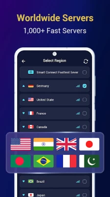 One tap to connect to a free VPN proxy server. Global VPN works with WiFi, LTE, 3G, and all mobile data carriers.