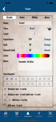 For each campaign you can create a party and manage its parameters during your campaign: