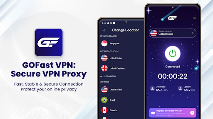 GOFast VPN is an Unlimited VPN proxy that offers you a fast, stable, and secure VPN connection and servers. Easy to use, one clicks to connect to VPN server. Download GOFast VPN to enjoy a safe, stable, and secure Internet now.