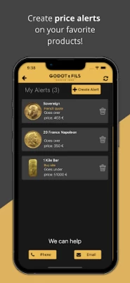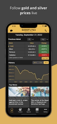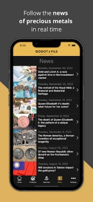 Download the Gold Price application developed by Godot et Fils, specialist in gold and silver since 1933, and get all the tools you need to optimize your investments in precious metals!