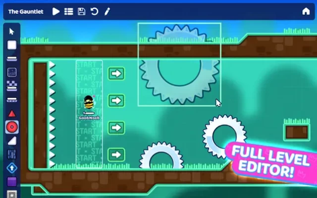 Unleash your creativity with the Level Creator, crafting and sharing your very own custom levels! The top rated, most interesting user levels are certified by the developers, and added to the main game regularly!