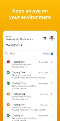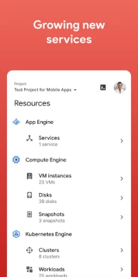 The app helps you manage your services running on Google Cloud directly from your Android phone or tablet: