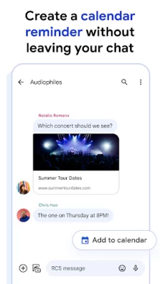 Keep the conversation going no matter what device you're on. Enjoy RCS chats with friends on your phone, computer, Android tablet, or smart watch with the Messages app.