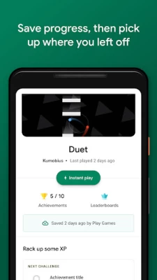 Games are more fun with the Google Play Games app. We'll help you find your next favorite game – from action to puzzles. And with "Instant play," many games require no installation. Really. Save your progress and track your achievements as you level up. Plus, you can pick up where you left off from any device.
