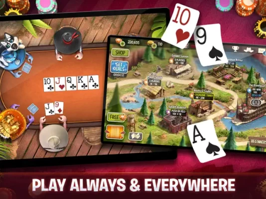 Travel through Texas by winning poker tournaments and cash games. Beat friends at Texas Holdem poker. The further you travel, the higher the stakes!