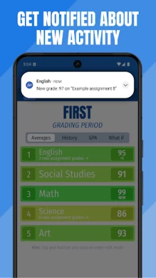 Get notified about new & changed grades, along with new attendance activity.
