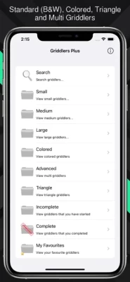 - It supports standard (black&white), colored, triangle and multi griddlers.