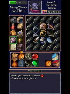 • Grim RPG is an incremental game, which means that you will be constantly improving your character and progressing through the game's content!