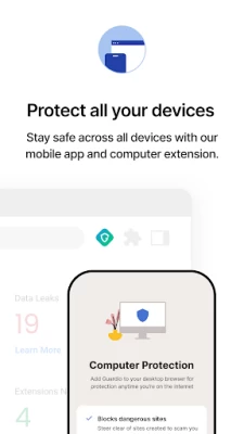 It all starts with data leaks. Guardio searches all corners of the internet, including the Dark Web, for your data. If we find it’s been leaked or exposed somewhere it shouldn't be, we let you know immediately. This gives you crucial time to protect or update your most sensitive data - passwords, credit cards, etc - before the bad guys can sell it. This is how you stay safe from identity theft.