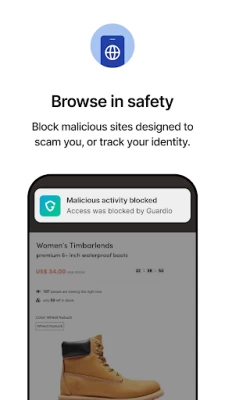 BROWSING PROTECTION - Guardio uses accessibility permission in order to monitor the sites you visit and warn you when accessing malicious sites.