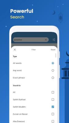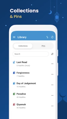 ● Share option with the ability to share images lets one distribute beautiful hadiths with loved ones