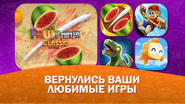 • Присоединяйтесь к миллионам других игроков в наших хитах: Fruit Ninja, Jetpack Joyride и Dan the Man.