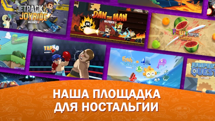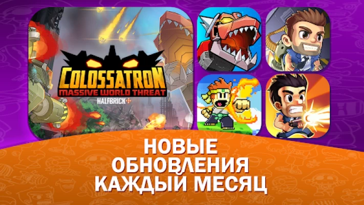 • Аркадные шедевры, такие как Fruit Ninja, культовые бесконечные бегуны, как Jetpack Joyride, а также хиты типа Dan the Man, Age of Zombies, Fish Out of Water, Colossatron - и многое другое! Вы можете найти их все на Halfbrick+.