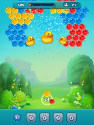 • Happy Bubble contains ads like banners, interstitials, videos, and house ads.