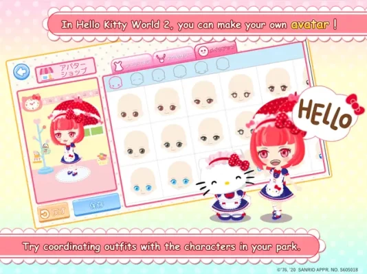 The avatar's cute design is something right out of the Sanrio universe, and you can even dress your character to your own fashion tastes!