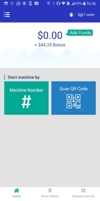 • Scan the QR code of your laundry room (one time process) • Start laundry machines via Bluetooth by scanning QR code on the machine • Check your card/account balance, and add value to your account for laundry.