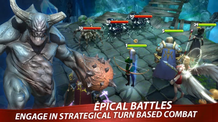 - Strategic, turn based combat - Extensive Hero collection - Collectable gear sets - Skill tree - Dynamic battles - 5v5 Combat - PvP Arena - Worldwide Raids - Rewardable achievements - Interesting quests - Bosses - Dungeons - Challenges
