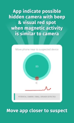 App analyses magnetic activity and warn you if it find magnetic activity similar to camera.