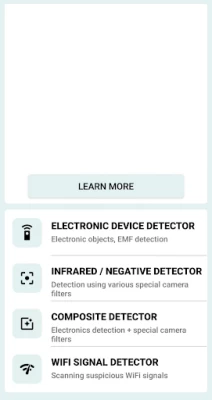 The Hidden Camera Detector app offers various detection features: