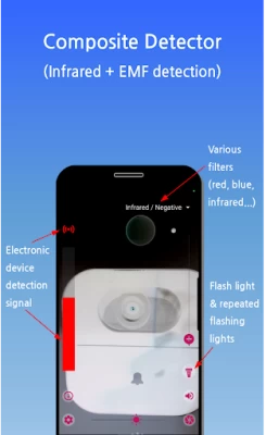 The composite detector function provided by this app is a convenient and reasonable detection method that is not available in other apps. Users can conveniently check the reaction of the electronic device detector while watching the video captured by the phone’s camera.
