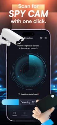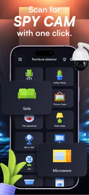 Our Hidden Camera Detection App not only performs IP and Bluetooth scanning but also gives you an idea of where hidden cameras may be located in your surroundings. The app can detect cameras that may have been hidden inside ordinary objects such as chairs, TVs, mirrors, bathrooms, toilets, washing machines, and picture frames.