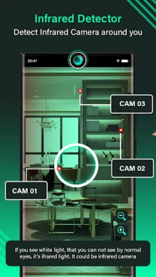 This hidden camera finder app is easy to use and provides clear, accurate results. It is equipped with an EMF detector, EMF readers, spyfinder, RF signal detector, spy finder, and anti-spy detector, making it a comprehensive solution for protecting privacy. Whether you're concerned about hidden spy cameras in your home, workplace, or hotel room, the Hidden Camera Detector Application provides the peace of mind you need, knowing that you're protected from unwanted surveillance.