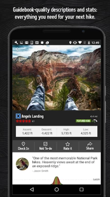 • Enjoy high-resolution photos and detailed topographical trail maps.
