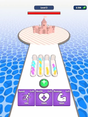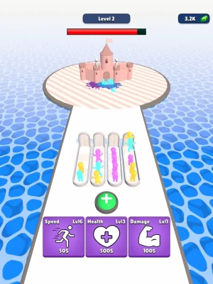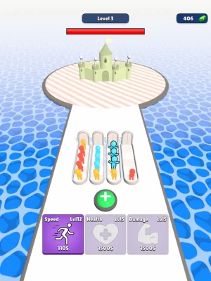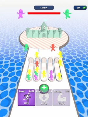 By pressing the plus sign, colored stickmans are spawned. Colored stickmans settled in the areas are separated into their colors by sorting. Stickmans, completely separated in their colors, begin to attack the opposite castle.