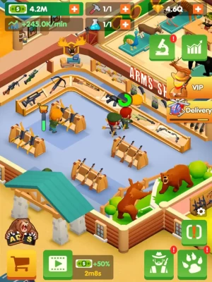 Different customers have different weapon preference.Build a gun shop to provide customers with all kinds of hunting weapons they like to use.Upgrade your gun shop to get more powerful weapons like Barrett Sniper Rifle, increase the price of weapons, and provide better and more efficient services. Build a clothing shop to provide customers with suitable clothes for hunting, like fur clothes, camouflage clothes or bulletproof vest. Build a tool shop to allow customers to buy useful tools and use traps and bait to hunt.
