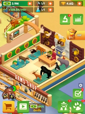Don't forget to upgrade your money vault. The profits of the hunting tycoon are stored here. Make sure you increase its capacity to be able to accumulate more money!