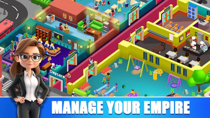 Have you ever wondered how to become a millionaire manager? Start with your managerial skills and grow your idle empire in this hotel tycoon simulator with excellence. If you like management games then this idle daycare tycoon, a casual easy-to-play game is surely for you where strategic decisions have to be taken to grow a hotel business with profitable results. Be the perfect host to your clients, take care of them by upgrading facilities, offering delicious meals and drinks. Use your imaginations to create amazing business empire and build your ideal daycare.