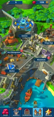 Monsters continuously attack the nearby villages. Besides exploring new dungeons you also have to protect them. Test your skills in the village siege mode and earn experience points needed to level up your heroes.