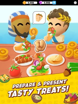 Establish a bustling marketplace and trade your cultural treasures with the diverse inhabitants of each era. Earn coins to upgrade your kitchen, unlock new recipes, and expand your culinary empire.
