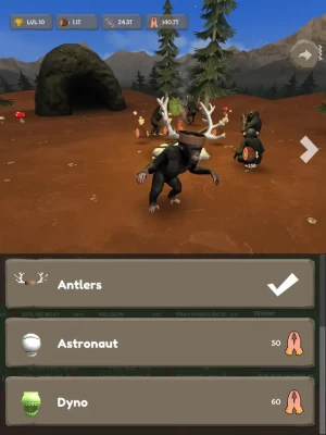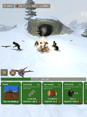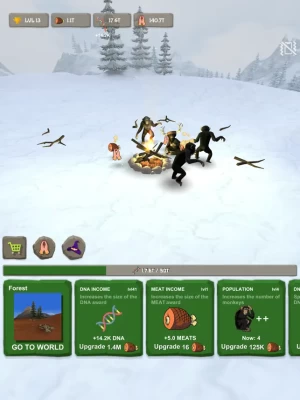 Improving your environment and skills, will give you more fire and more meat. DNA will allow you to level up and gain new abilities.