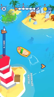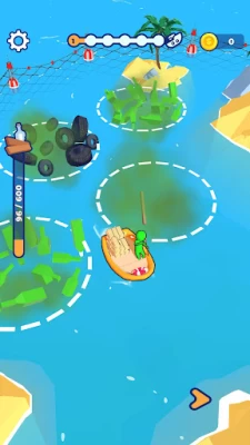 In Idle Ocean Cleaner: Sea Tycoon, players control a character on a raft who must collect waste that drifts towards the base. The player has a counter for the amount of trash collected in this tycoon game. Players can improve their base by swimming towards it. They have the opportunity to upgrade two different things: the waste storage and the raft. After upgrading the boat, the player must defeat the aquatic monster to progress to the next zone.