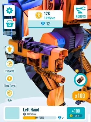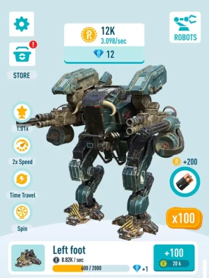 Idle Robots game has a huge selection of presented technologies. Here you'll find such legendary things as Bull, Scorpion, D.O.G, ARM and so on. Don't miss the chance to build and try yourself as a robot designer! Create them piece by piece and unlock more and more every time robots get some changes.
