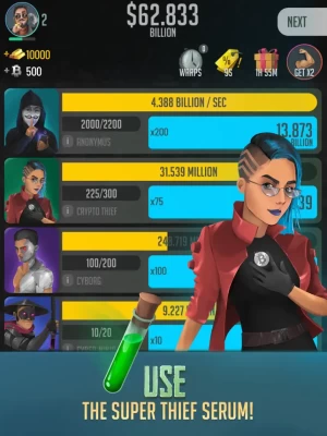 Ever dreamed of owning incredible team earning big money for you? Becoming a capitalist tycoon and just a Big Boss? Then Idle Thieves is the idle clicker for you!