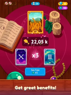 Ask your fate to the Tarot cards and obtain extra benefits as multipliers, tools, or assets that will help you immediately or in the future.