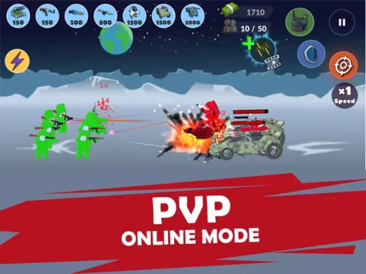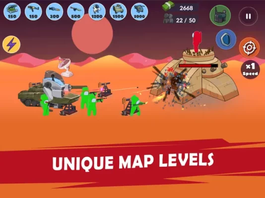 Experience a thrilling imposter adventure in campaign mode. Conquer new lands from Asia, Europe and ending with the Wild West. Immerse yourself in the era of modern battles and the legacy of great civilizations. Defend your base from the raid of enemy stickmen, tanks and fighters. Lay siege to the enemy tower and destroy it to win. Apply unique tactics for each battle and location. More than 50 unique tasks are waiting for you!