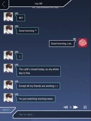 Experience a chatroom romance! Infinite Blue is a female-oriented chat dating simulator where you and six strangers all living near the same city have a messenger app mysteriously downloaded onto your phones. You will chat with and romance six cute boys, talk to them throughout the day, and let the story play out depending on your responses in the messenger.