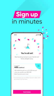 Our money sending app offers plenty of ways to earn loyalty points called InstaPoints. Earn points when you open an account, send money and refer a friend – and use the points to score discounts on your remittance.