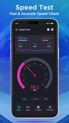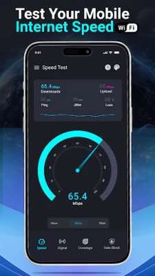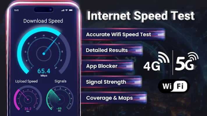 Internet Speed test meter is a free tool that evaluate Speed Test of your Internet and network coverage effortlessly with the Wi-Fi Speed Test app, ideal to test 3G, 4G, and 5G speeds.