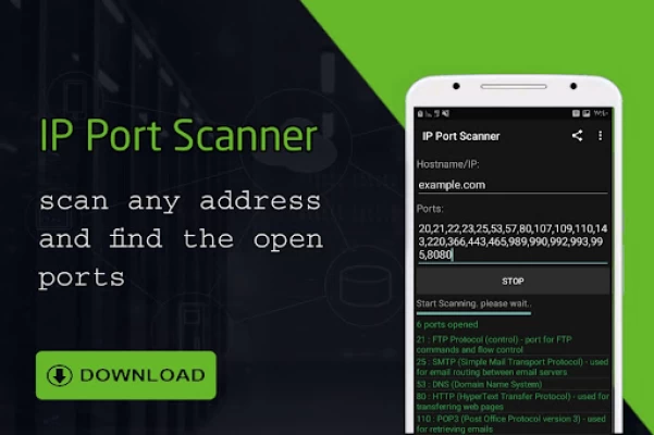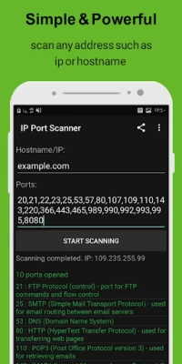 IP Port Scanner let you scan any address such as ip address or hostname and find the open ports.