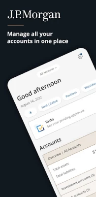 As a J.P. Morgan Private Bank or J.P. Morgan Wealth Management client, you can securely access your U.S. investment, banking and credit accounts anytime, anywhere using the J.P. Morgan Mobile app. Deposit checks, send and receive money with Zelle®, manage your account security and stay up to date with market research from experts in the field.