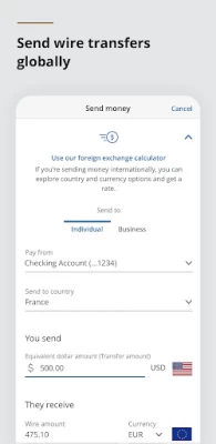 • Send domestic and international wire transfers.
