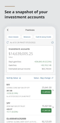 • See intraday investment account balances, position details and transaction history.