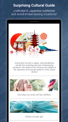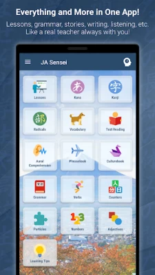 All-in-one application to learn Japanese. Hiragana, katakana, kanji, vocabulary, phrasebook, grammar, and MUCH more! Basic to advanced lessons. Smart progress tracking exercises to improve your writing, reading, speaking and listening skills. Discover surprising culture facts to think like a Japanese, and avoid embarrassing situations.